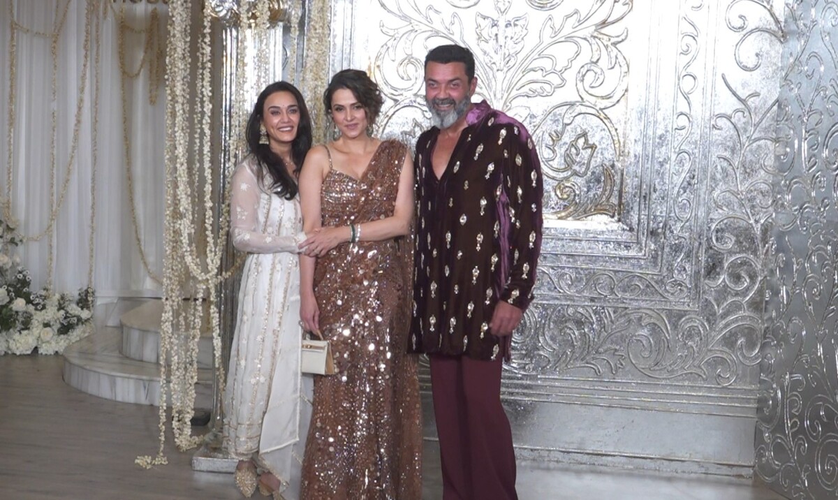 As the two met at the party, they looked cheerful and could be seen sharing hugs. The stunning actress also warmly greeted Bobby’s wife, Tania Deol, and the trio posed for the camera with all smiles on their faces.