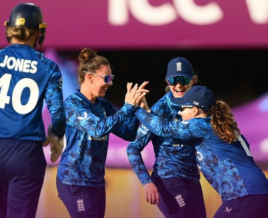 England’s spin trio of Linsey Smith, Sophie Ecclestone and Charlie Dean took seven wickets between them in England’s 10-wicket win over South Africa.