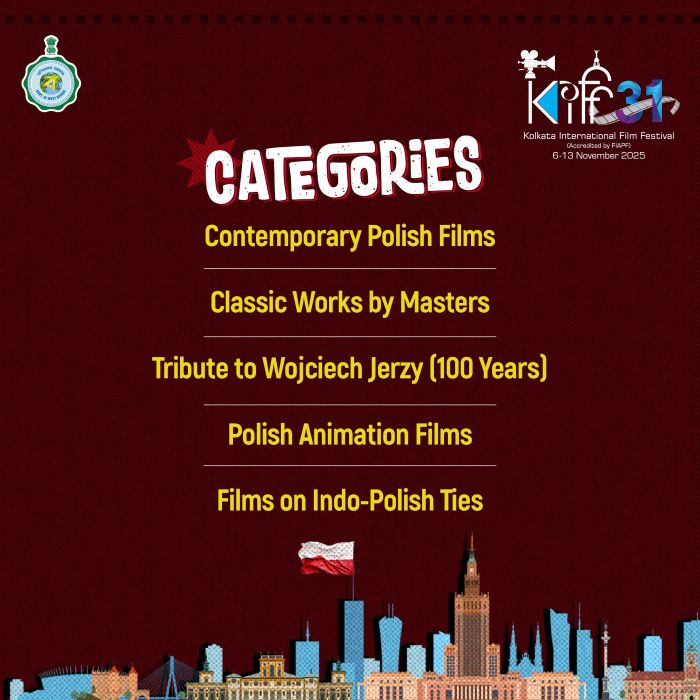 The week-long 31st Kolkata International Film Festival (KIFF) is set to commence on November 6, celebrating the best of global cinema with Poland as the spotlight country this year. Audiences can look forward to an impressive Polish Focus, featuring 19 films that span timeless classics, contemporary works, and acclaimed documentaries—each reflecting the depth, diversity, and artistic brilliance of Polish cinema.
