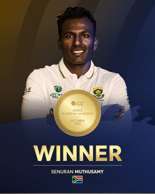 All-rounder Senuran Muthusamy’s outstanding performances with bat and ball in Test cricket and captain Laura Wolvaardt’s superb efforts as opening bat in the ICC Women’s Cricket World Cup 2025 have helped them win the ICC Player of the Month awards for October 2025.