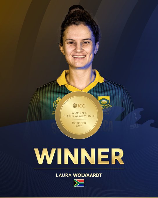 Laura Wolvaardt: “It’s an honour to win this award following the team’s World Cup performances in India, as part of a historic event for women’s cricket. The tournament featured outstanding matches and remarkable displays, which makes this recognition especially meaningful.