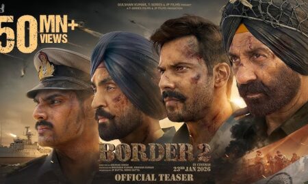 The teaser opens with a powerful voiceover by Sunny Deol, setting a patriotic tone. Varun Dhawan, Diljit Dosanjh, and Ahan Shetty are...