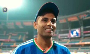 MI were four wickets down for 33 runs in the fifth over before Tilak Varma (34 not out off 32 balls) and Hrithik Shokeen (18) calmed the frayed nerves with a 48-run stand for the fifth wicket. MI reached 103 for 5 in 14.5 overs. Tim David remained not out on 16 off just seven balls. David finishing the match in style with a monstrous six .
